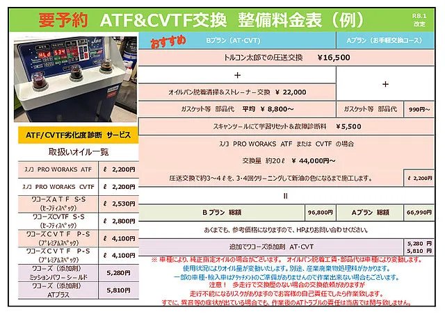 ※ オイル&部品持込み作業は、お受けしておりません。