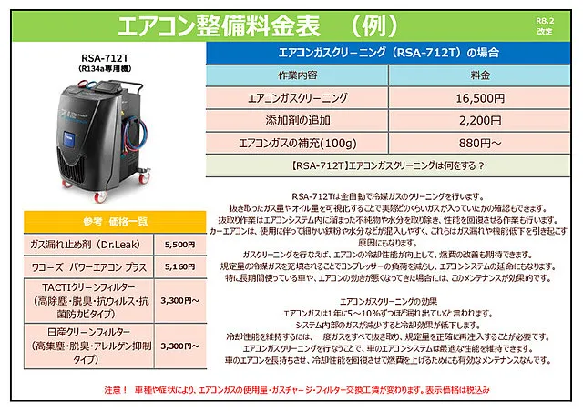 整備料金は、一例になります。